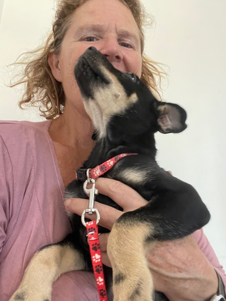 Max and his three siblings were dumped when they were just two weeks old. Thankfully, mamá was dumped with them. She fed and cared for them until they were weaned, and beyond. They came to me at three months old. Max has been raised as a loving member of my family. In return, he is super snuggly, affectionate, and eager to please.