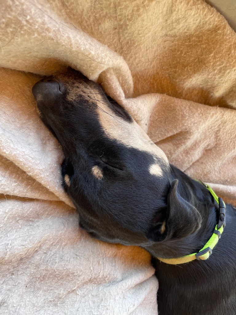 Best Guess of Breeds: Doberman/Black Lab/Pug Mix
