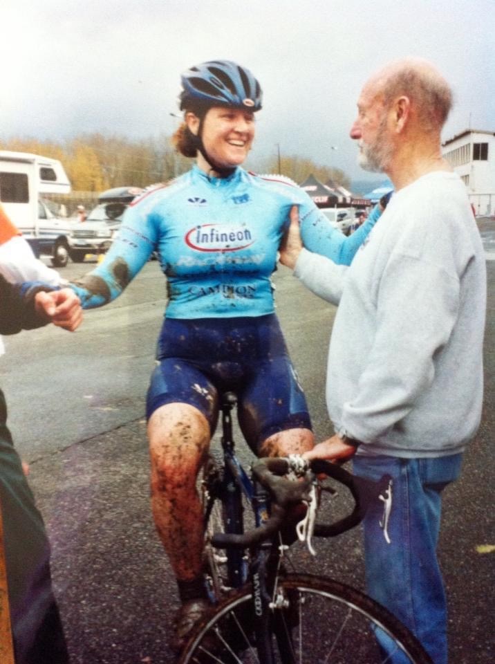 Dad was an athlete his entire life. He played football in high school, for the Air Force while stationed in Okinawa, Japan during the Korean War, then at Lewis & Clark College. In his 40s he took up road running and was on the top step of the podium almost every race he entered. He was a fighter, never content to be less than his best. He was thrilled to have athletic children, and while he really wanted to have a champion footballer son, he threw every bit of support behind me and my every athletic endeavor – I don’t think he missed a single competition from grade school through high school. I’m pretty sure his proudest moment was when he cheered me on to my podium finish in the Cyclo-Cross national championship race in Portland.