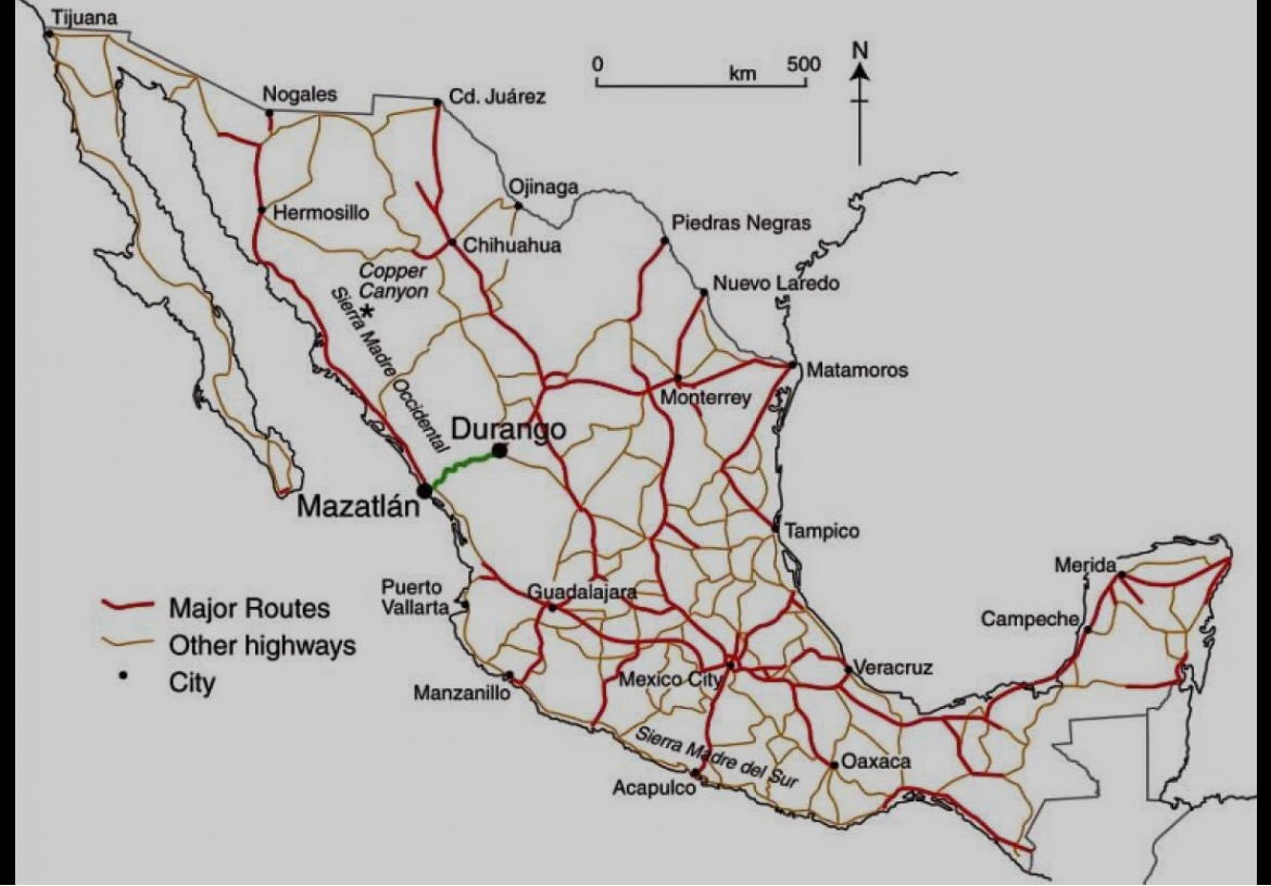 Mexico has an incredible series of Cuotas, or toll highways. Cuota’s are designated on maps with a “D” after the highway number. In my experience, the cuotas are well maintained, have generous shoulders, are dotted with rest stops featuring a gas station, an OXXO (Mexican 7-11), and often a very good restaurant. While the cuotas can get expensive if traveling long distances, I found it was the safest way to traverse the country. That said, in addition to the toll booth, they often have security check points with machine-gun armed federales. More often than not, a chat with a federale began with “donde vas? (Where are you going?), “donde vienes?” (where have you come from) and would devolve into, “are you married? Do you have kids? Why not?” At first I was completely intimidated and often forgot the answer to hello, but after a while I realized they were just curious about a single gringa traveling with naught but her faithful companion.