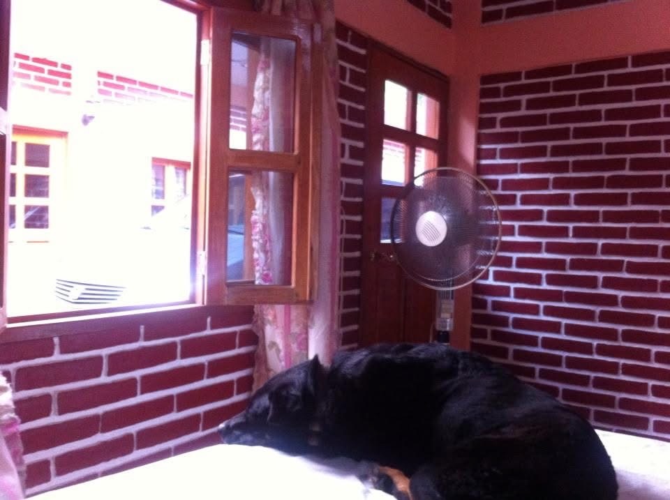 It was slim pickings when it came to hotels, and I’m pretty sure the one hotel in town was also a “Love Hotel”, a by the hour place. This would not be our last encounter with love hotels, and they always raised their eyebrows when I walked in with Luna on a leash. The hotel was completely dodgy and there was no curtain on the door window. You could say I felt a bit exposed, but since I always travel with extra saris, which generally function as bed covers for Luna, I sure was happy to have it to cover the window. I was also happy to have my fierce beastie by my side. I wasn’t thrilled about the people coming in and out of the hotel, nor about the noises eminating from the rooms.